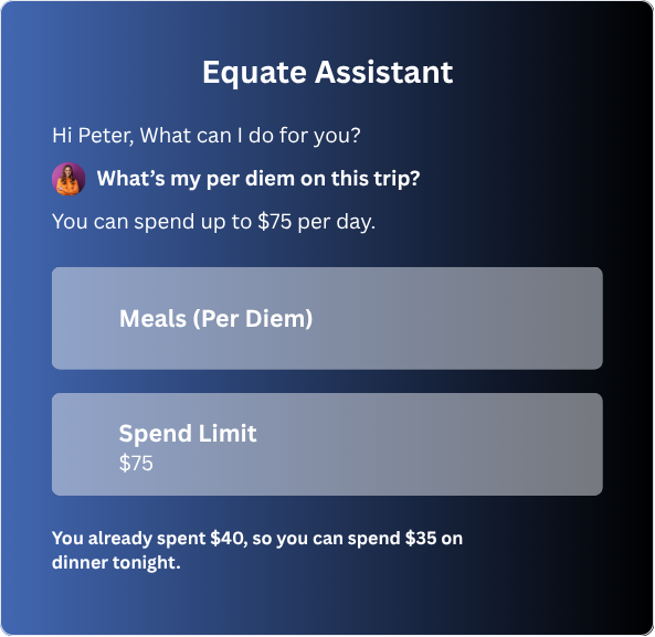 You can’t be everywhere, but with Equate your policy can. AI will auto-enforce your custom controls across Equate card, reimbursements, travel platform, and invoices.