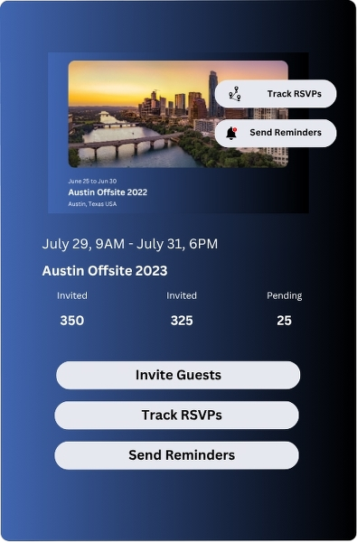 Invite unlimited attendees to book their own travel for group events using a shared spend limit, which covers external guests too. Track RSVPs and bookings, collect dietary preferences, and monitor travelers.